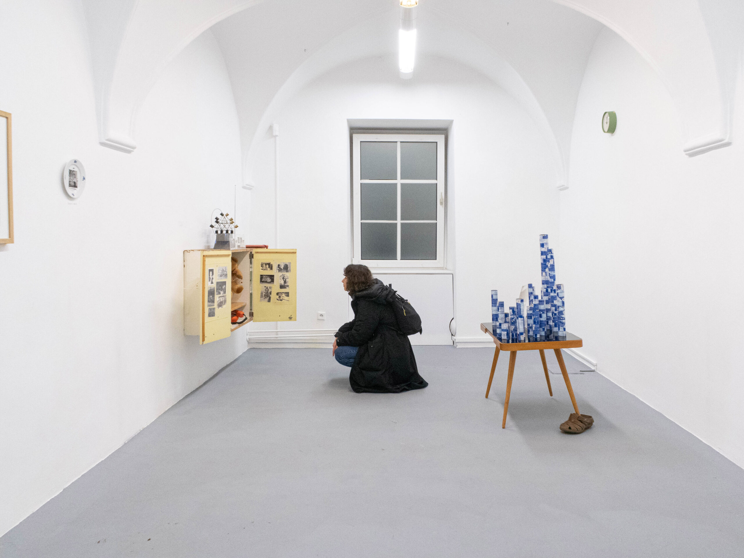 Jan Kostaa k podobným témam pristupuje iným jazykom. Vychádza z akademického prostredia a klasických médií, v ktorom má forma a vizuálna štruktúra výraznejšie postavenie. Aj on v tejto výstave pracuje s inštaláciou a nájdenými objektmi, jeho prístup je však viac filtrovaný, spracovaný, zovšeobecňujúci a estetizujúci. Osobný materiál prechádza vedomou transformáciou, v ktorej sa konkrétne skúsenosti stávajú modelovými situáciami. Kostoova práca nepôsobí ako spontánny záznam, ale ako premyslená konštrukcia, v ktorej má estetická hodnota rovnocenné postavenie s obsahom, čo umožňuje osobnému príbehu presiahnuť individuálny rámec.